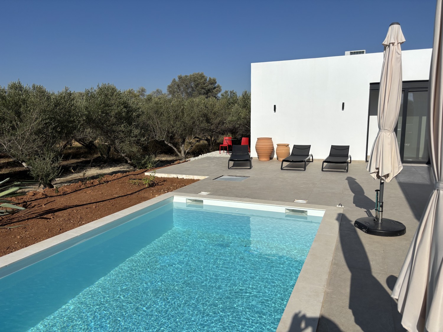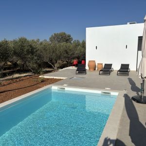 Helle Räume, klare Architektur, der Pool und der liebevoll gestaltete Garten mit Olivenhain, Obstbäumen und Kräutern – unsere Galerie zeigt Ihnen die Villa von ihrer besten Seite.